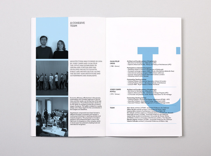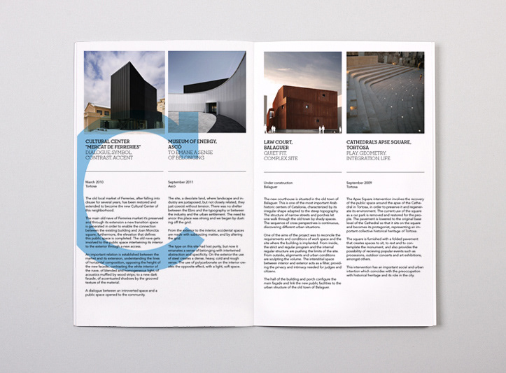 New visual identity for the Girona based architecture office, Arquitecturia. Design and layout of its new catalogue, which showcases their most recent projects. Architectural photography by Pedro Pegenaute.